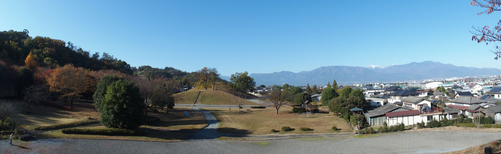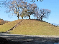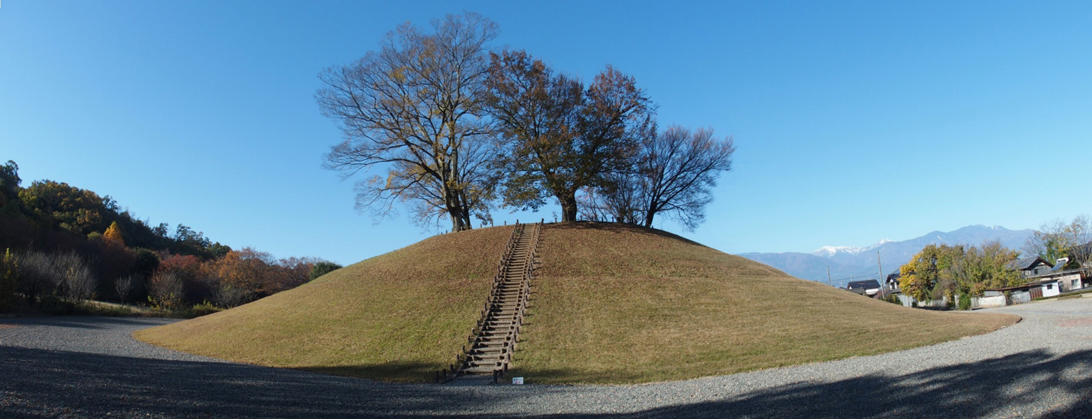 ● 国指定史跡 銚子塚古墳附丸山塚古墳(ちょうしづかこふんつけたりまるやまづか) 昭和5年2月28日 指定 丸山塚古墳 丸山塚古墳は5世紀初めに造られた、山梨県では最も大きな円墳です。 明治40年に墳頂で石室が見つかり、鏡・武器・装身具などの副葬品が発見されました。 石室は竪穴式石室でほぼ南北に向いており、割石を持送りに積み重ねて造られました。 また、石室の壁には朱彩の円文あ見つかっています。 墳丘は二段築成で、埴輪が立てられていました。 銚子塚古墳より少し後に造られ、これに続く権力者の墓と考えられています。 規 模 墳丘の直径72メートル、高さ11メートル、墳頂径9メートル、 竪穴式石室の長さ5.55メートル、 幅1.05メートル、高さ0.85メートル 副葬品 四神四獣鏡・鉄斧・鉄鎌・鉄剣・鉄銛(てつもり)・石釧(いしくしろ/腕輪)など (東京大学に収蔵) 出土品 埴輪・鉋(やりがんな) (山梨県立考古博物館に収蔵) 平成19年3月31日 文化庁 山梨県教育委員会